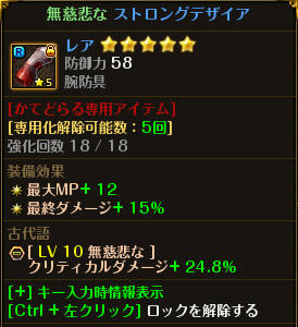 そんなわけで何度かの倉庫整理でも分解されずに残っていたストロングデザイアを引っ張り出してきた次第です。妖精の森が適正レベルだった頃にドロップした思い出の品でもあります。当時はギガントアームでしたっけ?ギガンティック?ちょっと記憶が曖昧です。
