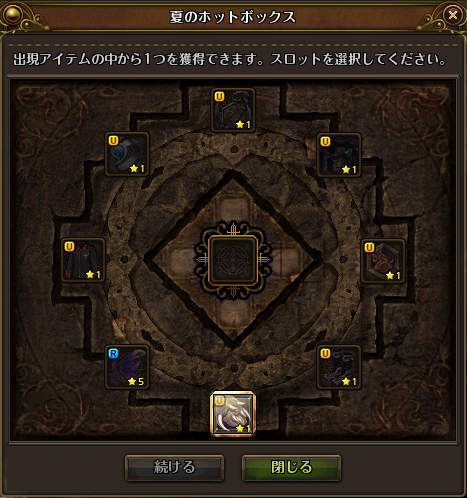 ルイーゼの装備箱ドロップのイベントを機に、肩以外の部位で確保しようと狙っていました。腕は既にU装備、頭はノーダメのために変更不可ときて足以外無かったのですが万に一つを引き当てることに成功。ただガチャ産のU装備の下落が続いているため何かいいものが手に入るかもしれないと様子見で古代肩は未だ装備せず。
