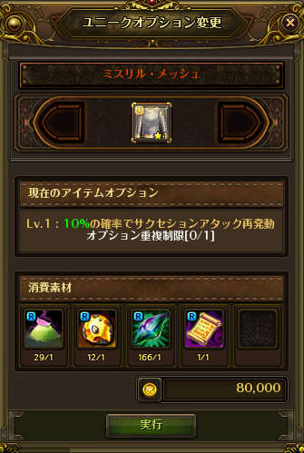 フィーバー装備ボックスから出た(売ってもらった)ミスリル・メッシュにUOPを付けました。2回目でサクセッション再発動が付きました。多分現状のモンク最終形態のパーツの1つのはずです(実際に使ってみないと「再発動」の実態が分かりませんが)。