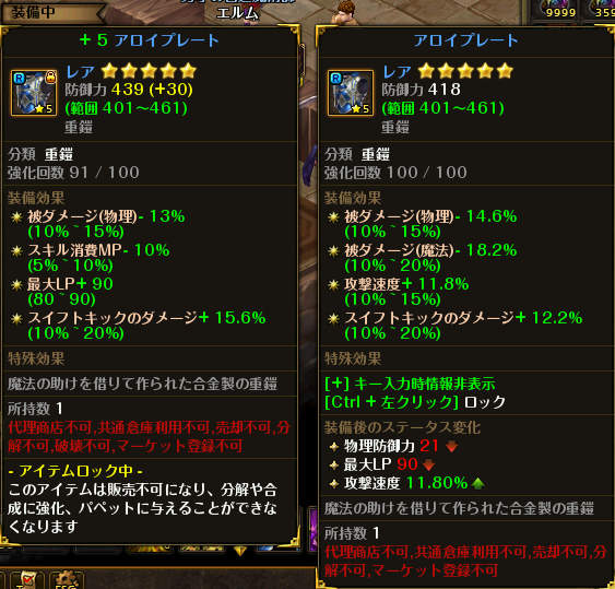 変貌する異形が両方とも自然系でOPもクリダメ制限UPだったのは残念。亜人系だったら探検Dで使えたんだけどなあ。なんせ腕装備はまだ征服者の手甲ですからね…。休止前にヒートセスタスを用意して、なけなしの精髄で古代語移植かUOPやるぞーと思ってたら休止、復帰してからはOPがクリダメなので速度が欲しいなあと思い手を付けず(命中の方がいい?)。